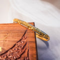 The Pyratek™ men’s kada features a bold design with raised pyramid-style patterns and silver-toned accents along a polished gold surface. Crafted with 1 gram of 24 Karat gold embedded on its surface, it offers a premium look with lasting durability. The textured detailing adds depth and character, making it ideal for traditional wear, festive occasions, or everyday style. Pyratek™ is a strong, stylish statement of masculine elegance.